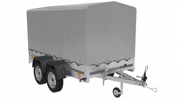 GARDEN TRAILER 264/2 Remorque KIPP conçue pour le transport de matériaux, à deux essieux . La roue de support, roue jockey permet une manœuvre confortable de la remorque non reliée à la voiture. Le cadre H-1100 avec une bâche grise protège vos marchandises contre les intempéries, permettant un transport en toute sécurité même en cas de pluie ou de soleil intense. De plus, la couverture crée un espace supplémentaire qui vous permet de transporter plus de marchandises. La durabilité de la remorque est assurée par un cadre porteur en acier de construction à haute résistance et une surface de transport en contreplaqué imperméable de 9 mm d’épaisseur.